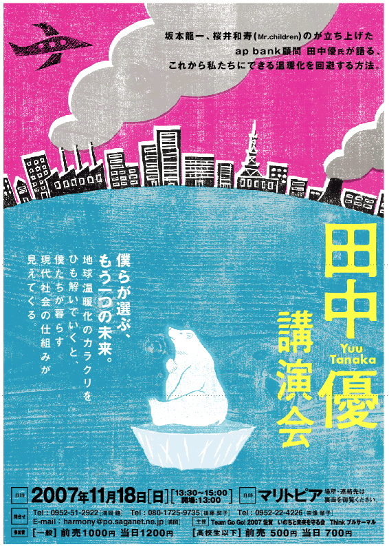 田中 優 講演会 投稿日 2007-10-04投稿者 yukihira カテゴリーcolumn 出来立てホヤホヤの仕事。これは中々面白い講演会。興味のある方はぜひ聞きに行ってみてください。世の中の仕組みが見えてきます。