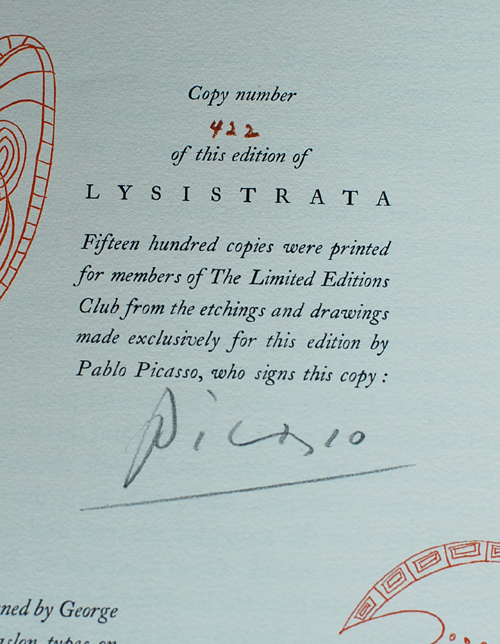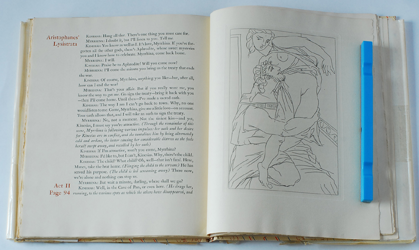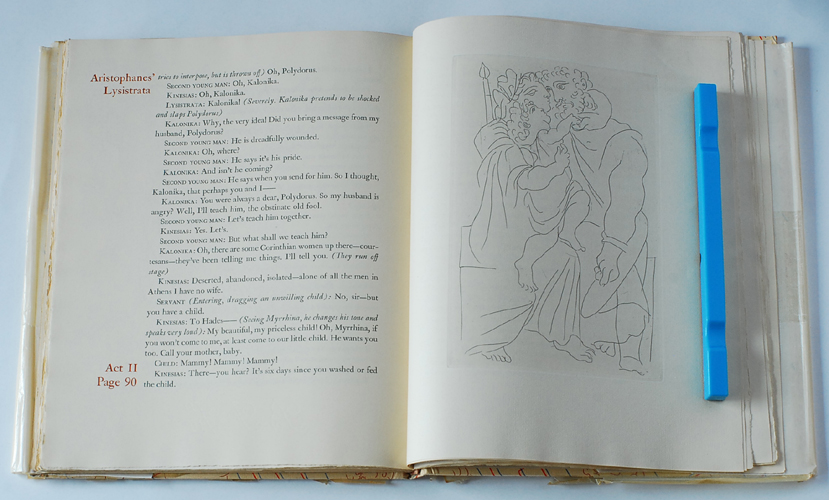 ギリシャの劇作家アリストファネスの戯曲「リシストラータ」を、ピカソの友人ジルベール・セルドが英訳し、ピカソが6枚のエッチング を付した作品。